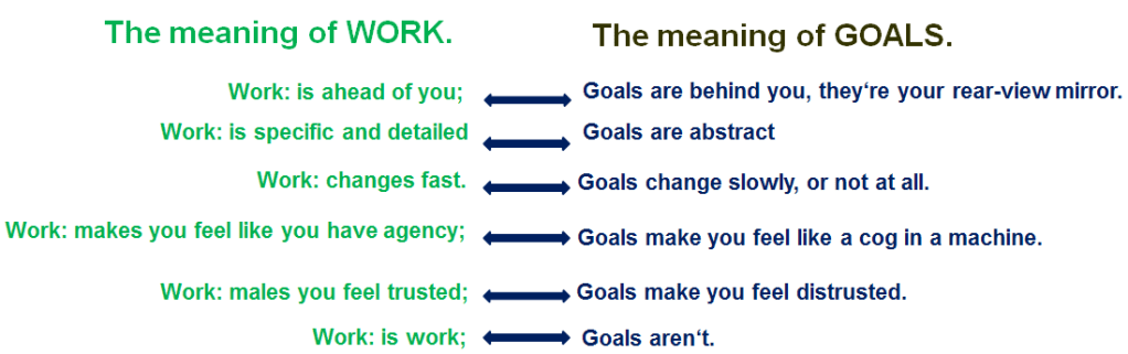 Despite this evidence, however, it remains true that goals, and cascaded goals in particular, have an intuitive appeal to many leaders who find themselves in search of ways to ensure efficient and aligned execution in their organizations. And, at the same time, it also remains true that for those of us in the trenches, our experience of goals feels non-intuitive, mechanical, fake, even demeaning. Why is that?