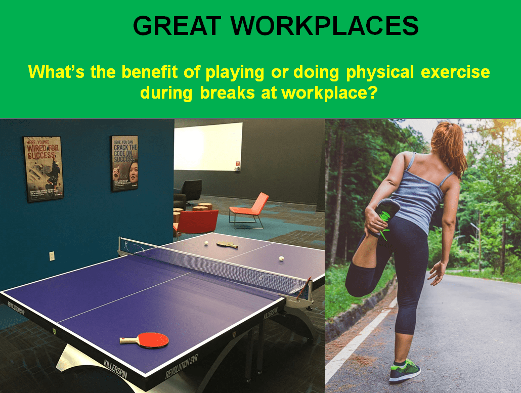 Another study, for example, found that just 30 minutes on a treadmill led to improved creative performance and that the benefits endured for a full 2 hours. Running has also been linked with greater cognitive flexibility. The improvement in mood, coupled with increased blood flow to the brain, provides joggers with a significant mental boost. To their credit, a number of organizations have taken these findings to heart and looked for ways of incorporating exercise into the workplace. At many companies it’s no longer surprising to enter an office and discover a receptionist sitting on a large rubber ball. Or to learn that her manager has given up sitting altogether and now stands all day in front of an elevated desk. Most organizations can’t afford an in-house gym. But they can afford to give employees wireless headsets that allow them to walk around their office during long conference calls. Another low-cost approach is: offering employees free weights they can use over the course of the day. Rewarding daytime gym-goers with an extended lunch can also benefit workplace performance.