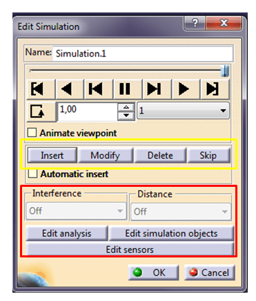 In the dialog box select the simulation object and click OK. ( If you preselect the object in the SpecificationTree before to click the Simulation Icon, this selection dialog box won´t be displayed, you will directly see the two editing dialog boxes).