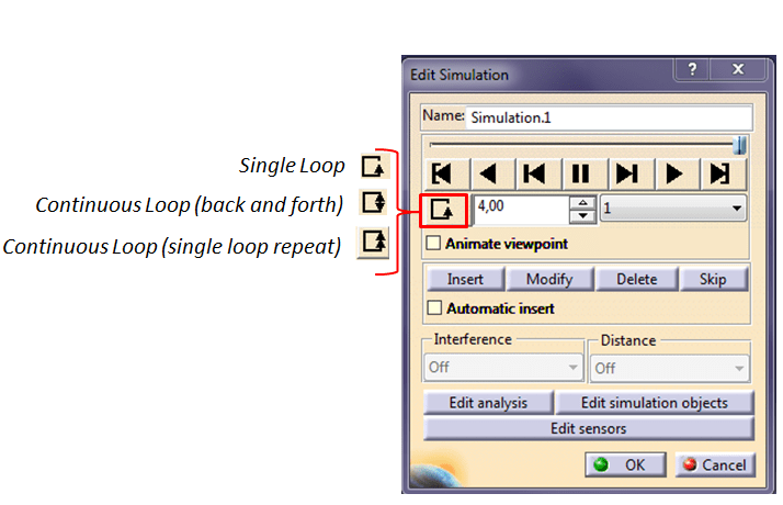 Also important and useful option is the Change Loop Mode button. With a single click on it you can chage the loop mode you wish to see your simulation.