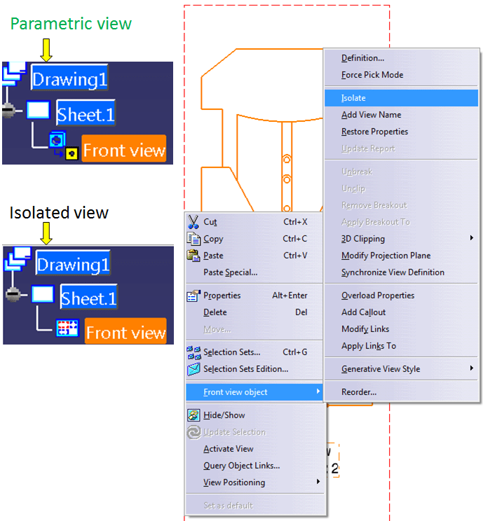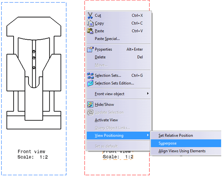 Catia will now ask you to point the view you want to superimpose other view(s).