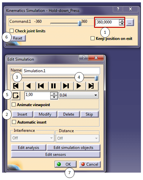 Of course you can be creative here and use as many simulation sequences as you want. Just do the settings for each of your prefered sequence in the shown order from Step 1 to Step 5. In this example I ‘ve used only one simulation sequence for the Command.1 at at 360°. So type the value, click Enter and continue with Step 2 until Step 5 , check the result and when you’re done proceed with step 6 and 7.