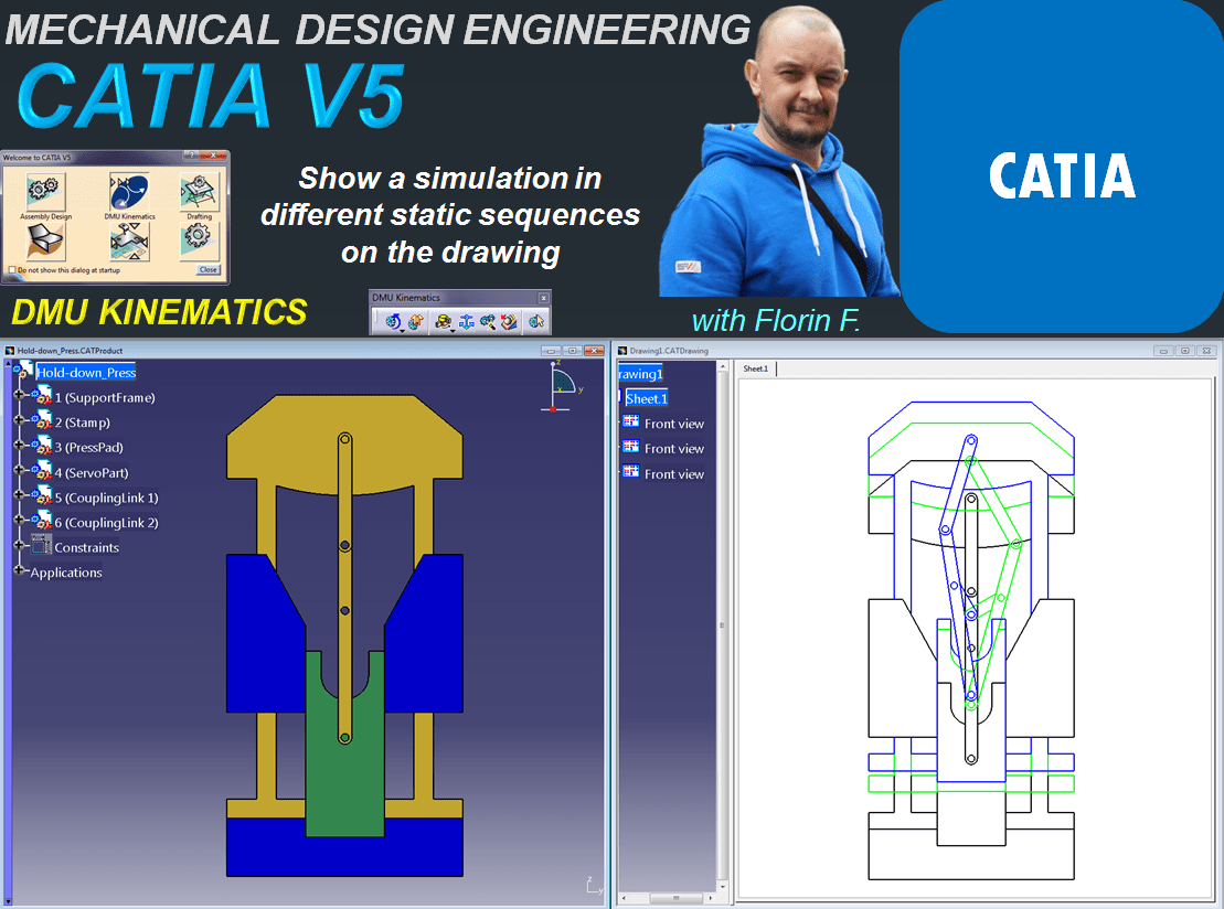 In this post I will show you how can you present different simulation stages of a mechanism in few static sequences drawing. Obviously before to create a drawing you must have your 3D available. So let’s create the mechanism first.
