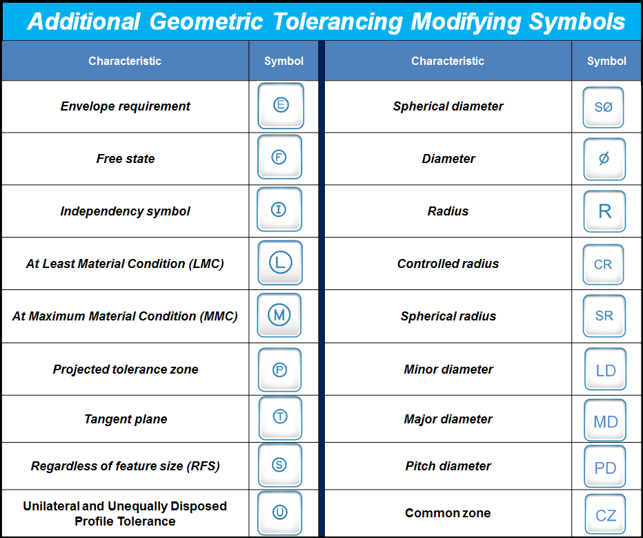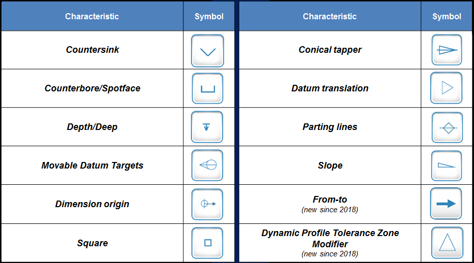These symbols are presented as follows (ref. ASME Y14.5M And ISO/TC 213):