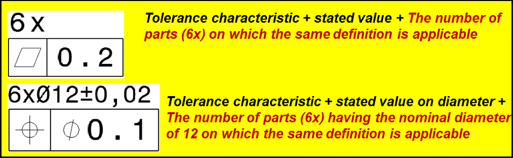 Tolerances that apply to more than one element must be entered with the number and “x”.