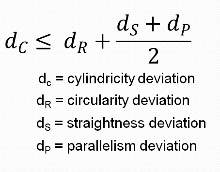 If such devices are not available or the workpiece can not be placed on the device, then on the drawing instead of cylindricity it is better to specify functional characteristics based on circularity, straightness and parallelism and determine the cylindricity deviation with the formula as shown.
