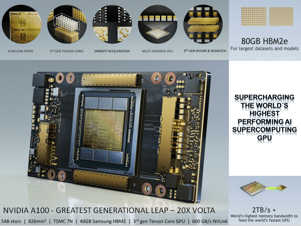Likewise in 2020 Nvidia Unveiled Its Next-Generation 7nm Ampere A100 GPU for Data Centers, which is Absolutely Massive = 7nm FinFET process and 54 billion transistors. As the NVidia CEO himself Jensen Huang revealed this GPU has a million drill holes. 30,000 components, 1 kilometer of traces and all its heat pipes are made of Copper.