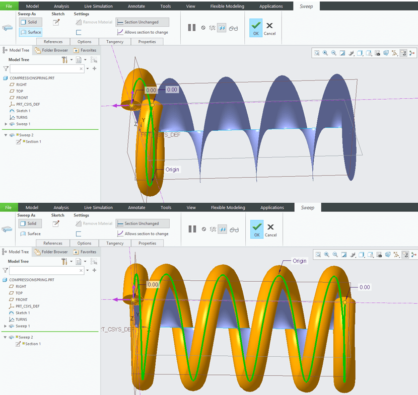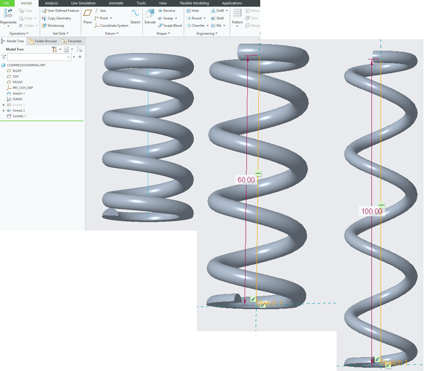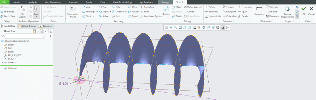 Designing Helical Shapes such are Springs with variable pitches sometimes is a challenge, mainly for the beginners. But things are very simple to do & control, CREO Parametric is an excellent tool for that and in this post I will show you how to do such design work.