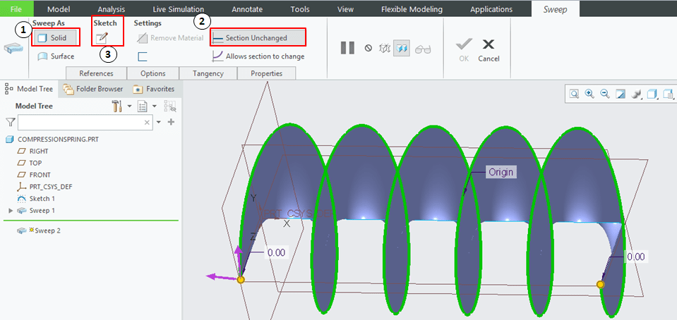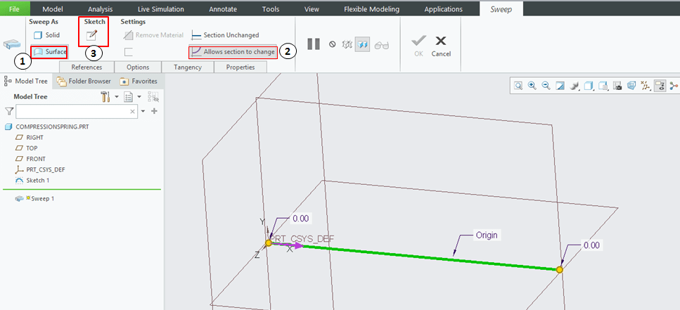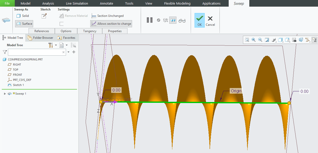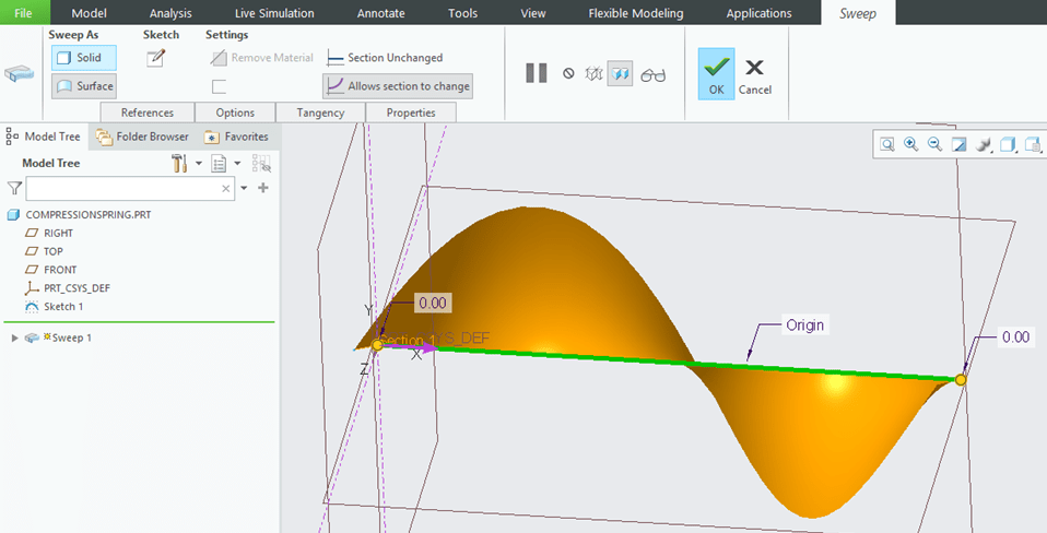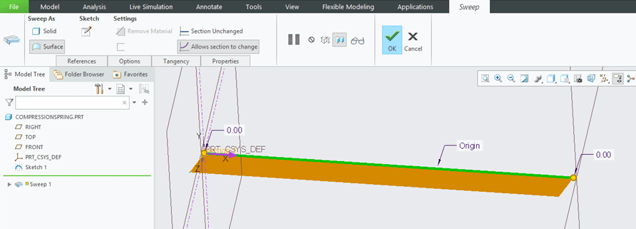 CREO activates back the Sweep dialog box and this time I see this: