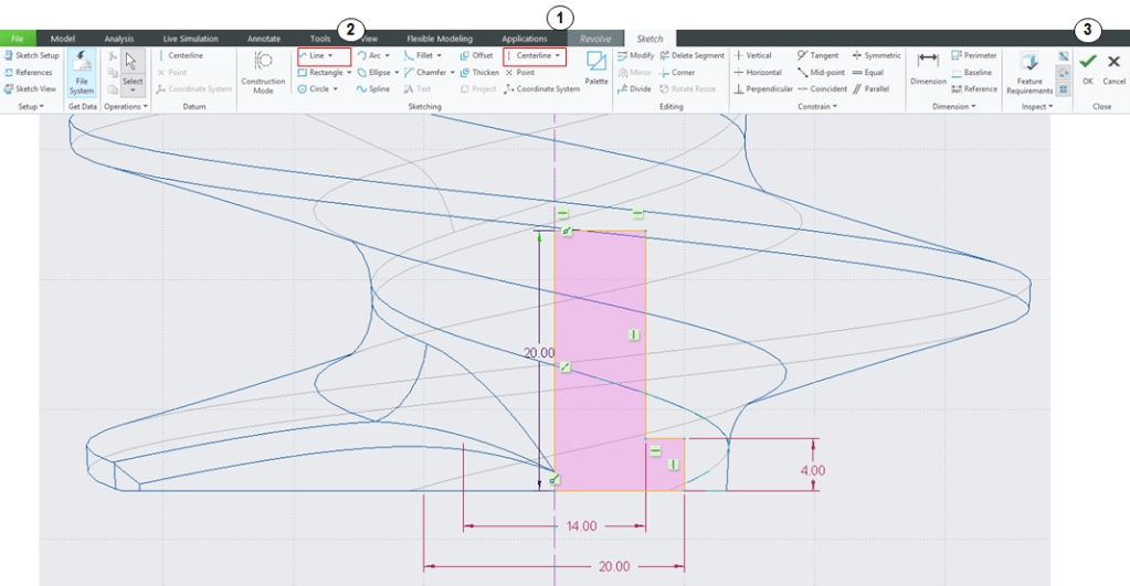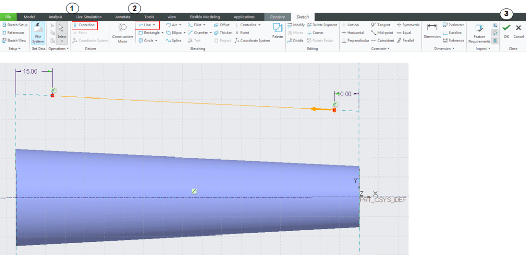 The setting nr.3 is just to quick check if everything is ok with the sketch- but for simple lines like this here, not really necessary to use it but is good to have some practice anyway. Click OK and Creo will put you back in Revolve definition dialog box. Like I mentioned at the beginning, before to add volume to your part you first must work with surfaces. Therefore keep the setting “Revolve As Surface” selected and click OK.