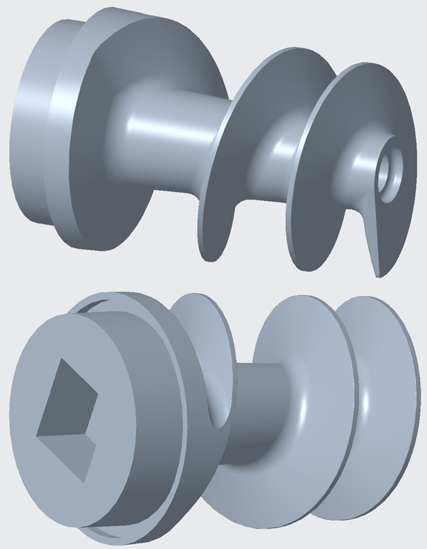 As this is a circular part, obviously the 1st feature to be created is a Revolve which will be the reference for the rest. Extrusion Screws are used in many applications, they can be either Cylindrical or Conical, with constant or with variable pitch. From my experience in injection molding technology, I always recommend the Conical shapes with variable pitch. This is the best design for a performant injection molding process of plastic parts.