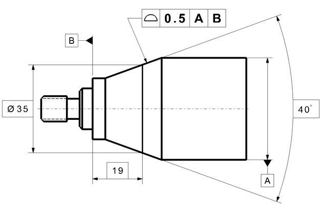 By skillfully manipulating tolerance values and datum references, an expert designer can use profile tolerancing to control a surface’s form, orientation, and/or location. That’s desirable where other types of tolerances, such as size limits, flatness, and angularity tolerances are inapplicable or awkward. For example, in Fig. 11, the profile tolerance controls the form of a conical taper. The reference to datum A additionally controls the cone’s orientation, and the reference to datum B controls the axial location of the cone relative to the end face. In this case, size limits are useless, but a single profile tolerance provides simple and elegant control. In other cases where more specialized controls will work just fine, it’s usually less confusing if the designer applies one or more of them instead.