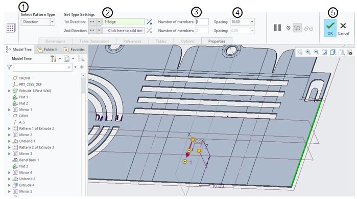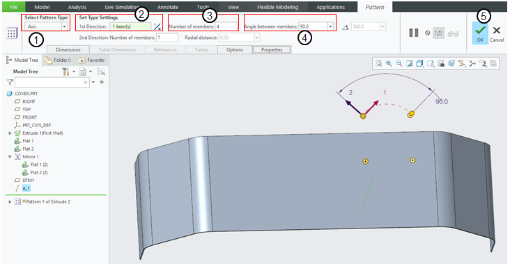 In the Model Tree keep the last feature as ” Pattern 1 of Extrude 2″ selected