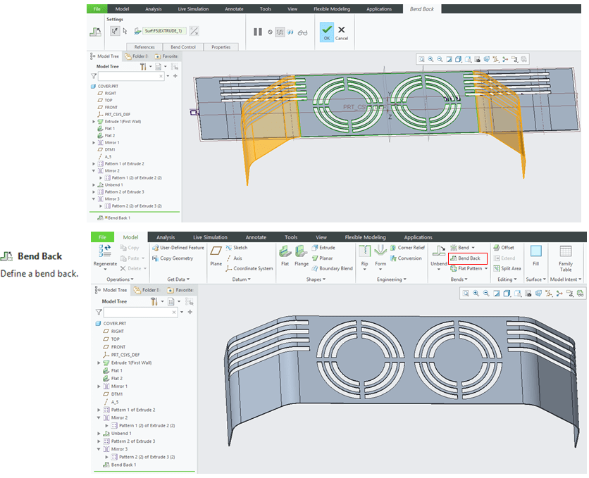 Once the holes are added “Bend back” the part and keep the small inner latches on left and right unbend.