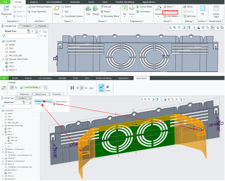 You can easily control the bends via “Bend Control” tab where you have the option to bend the contours or to keep them flat.