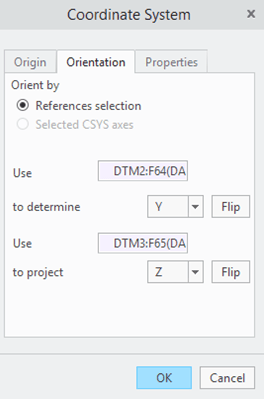 In the “Orientation” tab you have the option to orient the coordinate system as you wish.