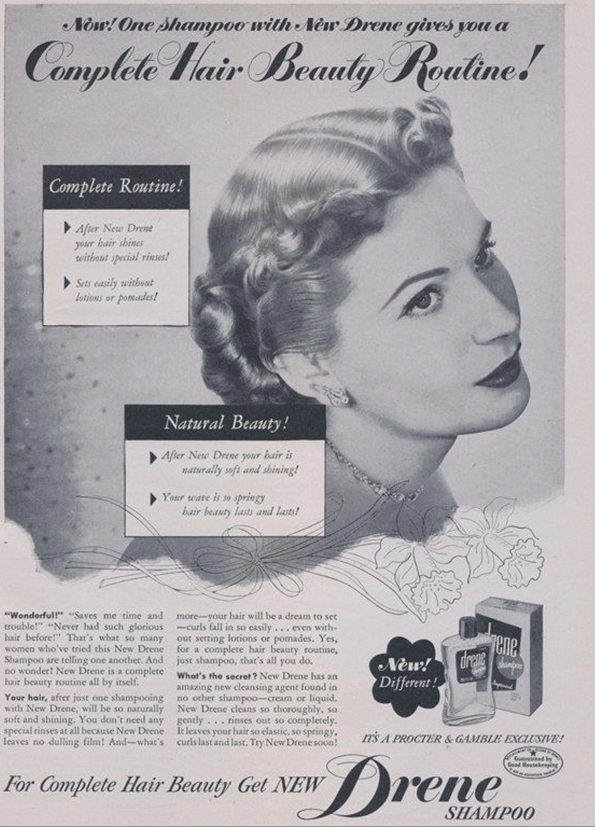 The word shampoo came to the English language from India, where it referred to a type of head massage using oil and lotions. The practice was imported to Britain during colonial times and eventually came to mean a type of hair washing. The first modern shampoo was created in the 1930s by Procter & Gamble; it was called Drene.