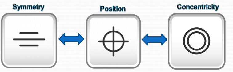 True position is closely related to symmetry and concentricity as they both require the location of features to be controlled. However, True position is more versatile since it can be called on a feature of size or combined with other geometric tolerances to specify an entire part envelope.