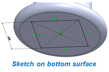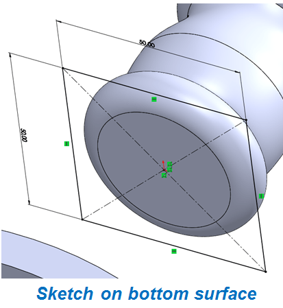 On the handle’s bottom surface sketch a square of 60mm;