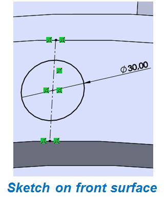 On front side of Outer Wheel on the upper side in the middle sketch a circle of 30mm