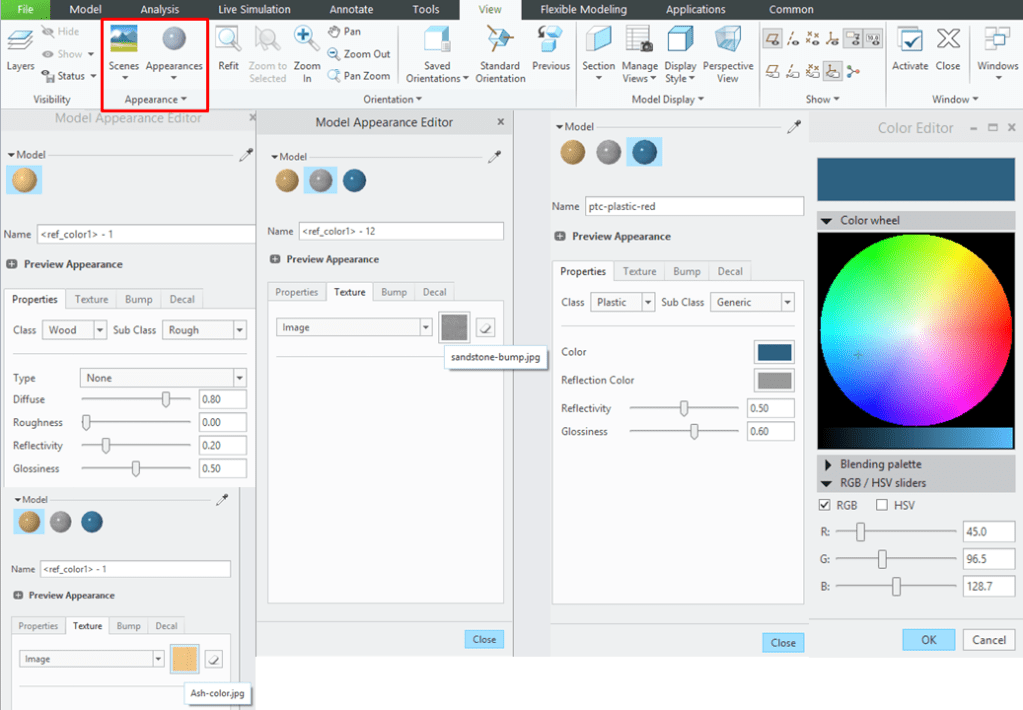 Apply appearaces to make the final design look more attractive. Switch to View workbench and for example apply the following colors: