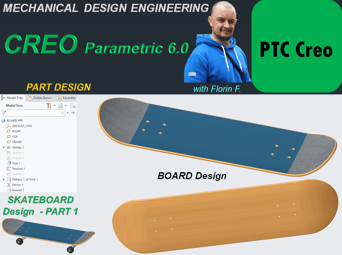 This is Part 1 of the design work for Skatebord product. As usual I start this work by designing each component and later I will generate the final product assembly. The first component is the BOARD.