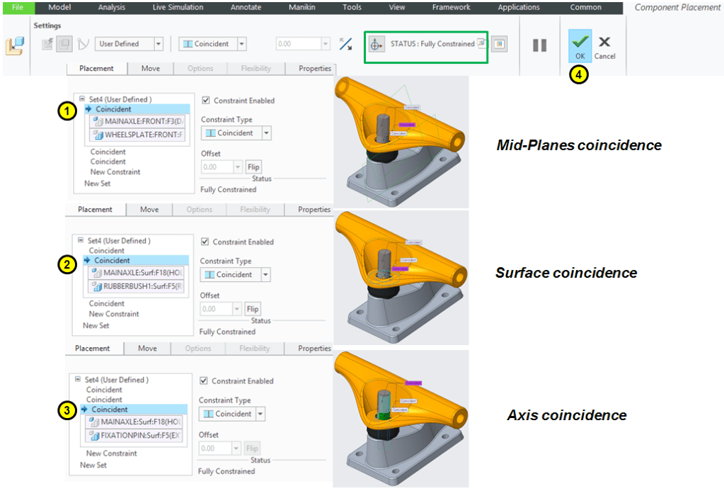 Always check the STATUS and make sure is “Fully Constrained” before to click OK.