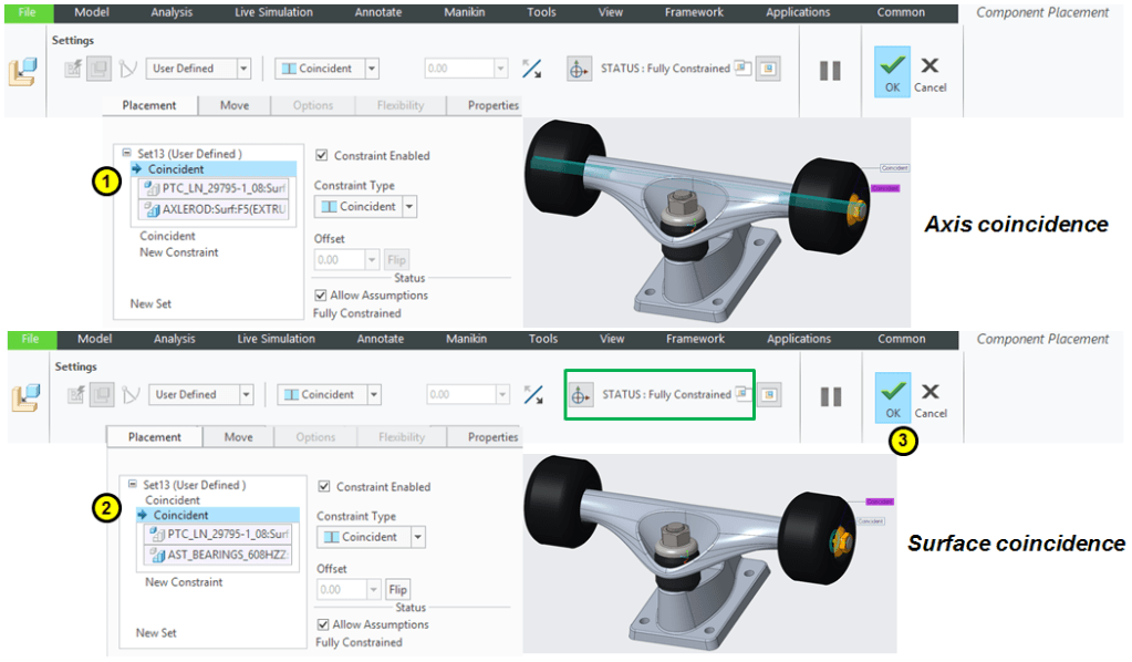 To create a product you must first design the component which are later put together in the final product assembly. But when every component is ready also it makes very much sense to group some components in a sub-assembly which will be part of the final one. Therefore let’s create the sub-assemblies necessary for the Skateboard product, namely The Wheel Assembly and The Axle Assembly.