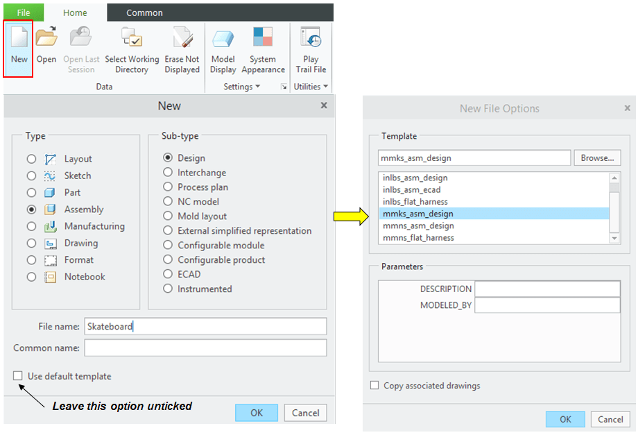 Create New Assembly and rename it Skateboard