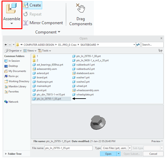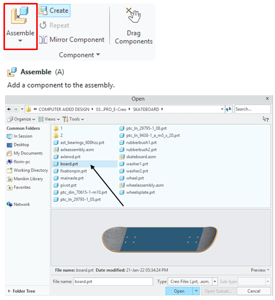 In Assembly Environment click on Assemble Icon and browse for the part called “Board” in project folder.