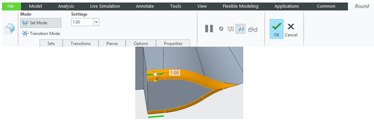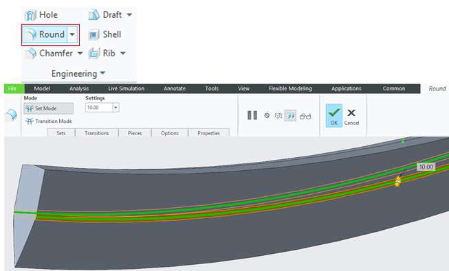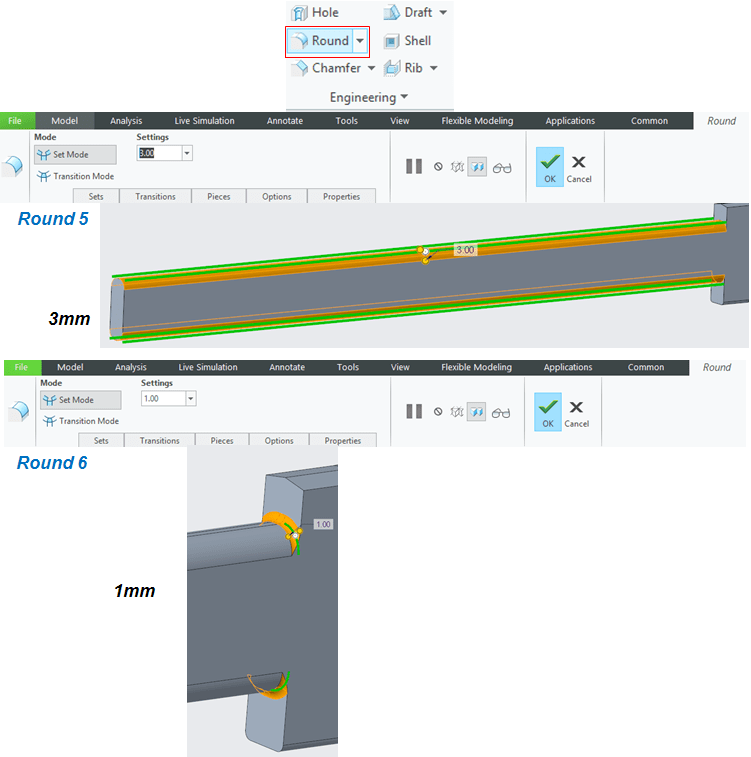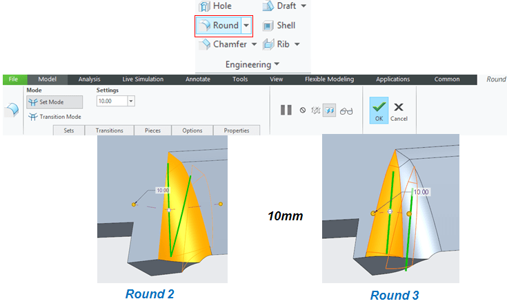 Add 2 Round features of 10mm as shown: