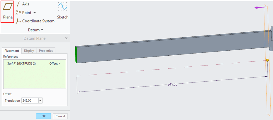 Create a new Datum plane (DTM1) as shown:
