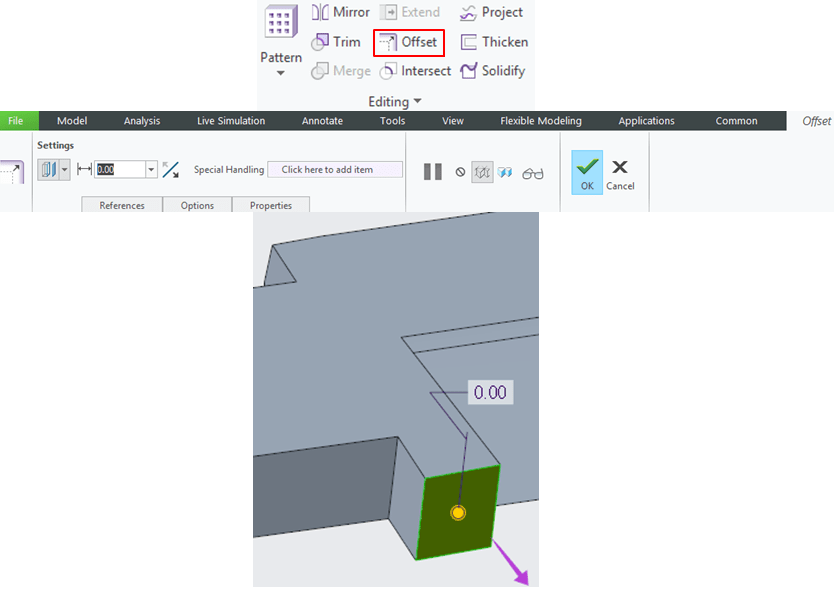 Create a new surface on the bottom using the Offset icon and keep it at 0 mm.