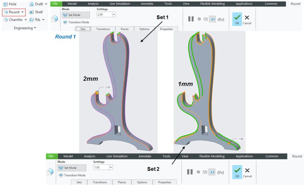 Add one round feature in 2 sets as shown: