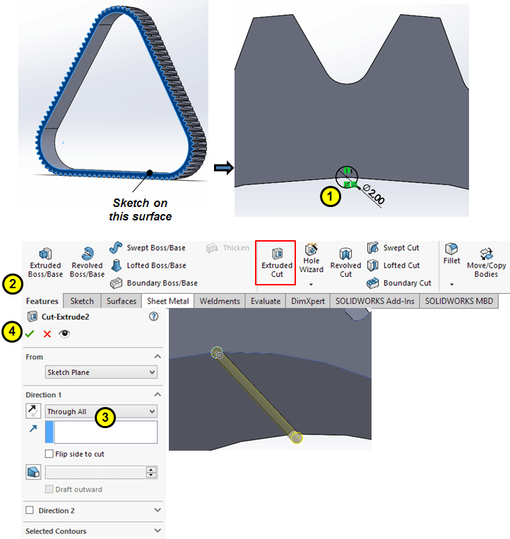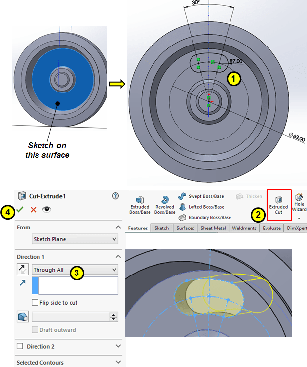 Create the 2nd extrude cut as shown: