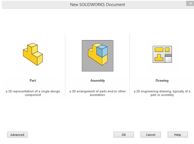 Right after new assembly file is created, SOLIDWORKS will ask you to Begin the Assembly by adding components. Here you just have to browse for the file called Star-Gear in the project folder and click Open then again OK to confirm that the part has been added.
