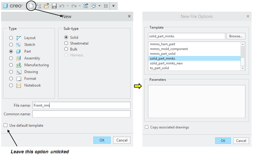 Click on Assemble icon and browse for the 1st component in project folder.–> Choose the Front-Rim past and constrain it as default position in the assemby: