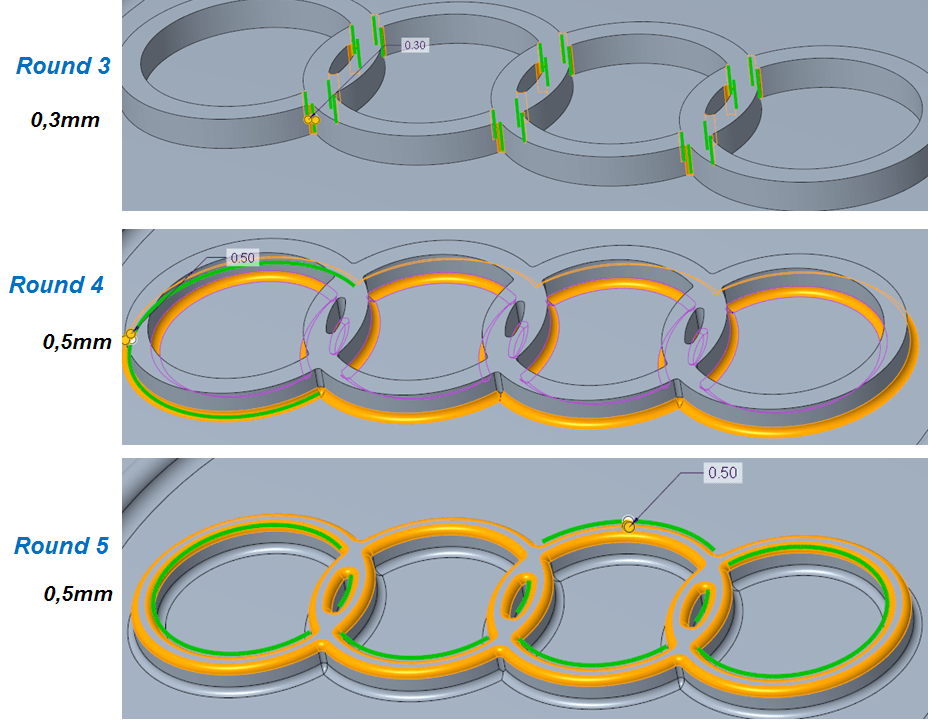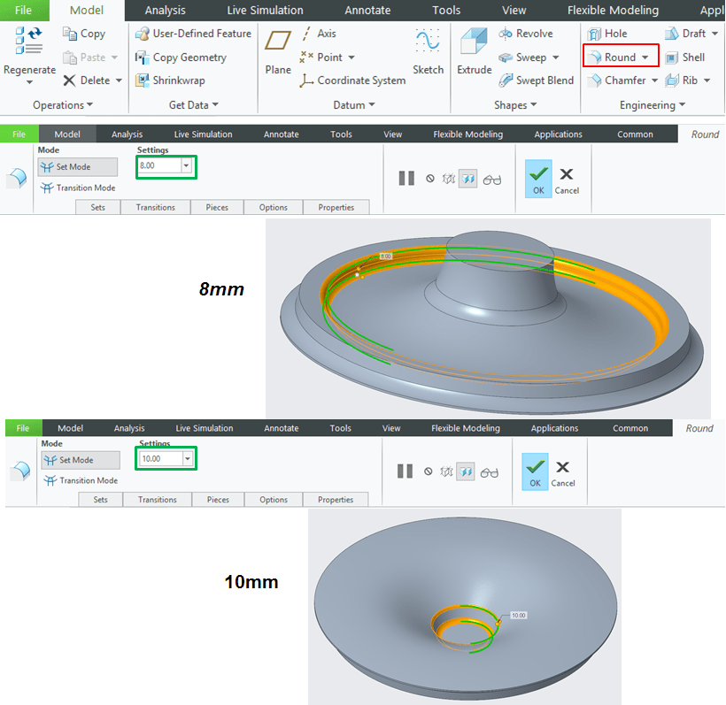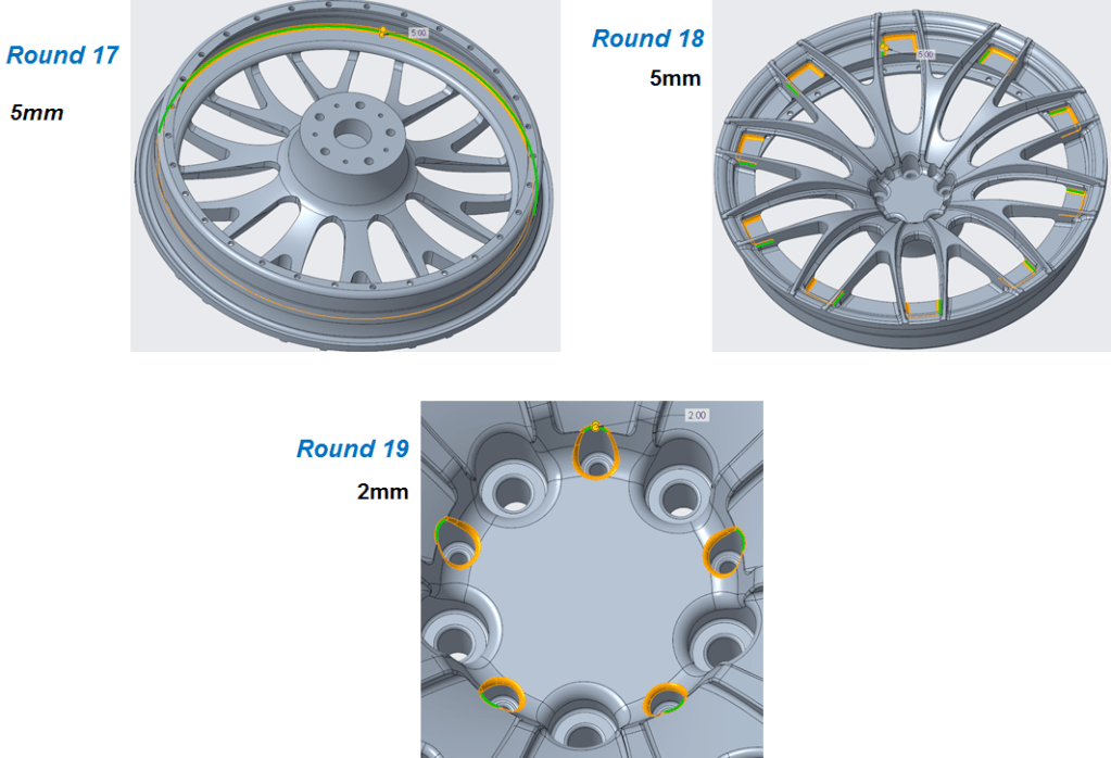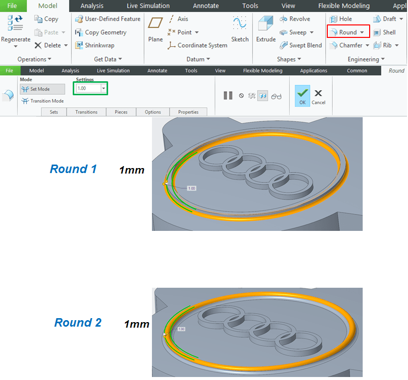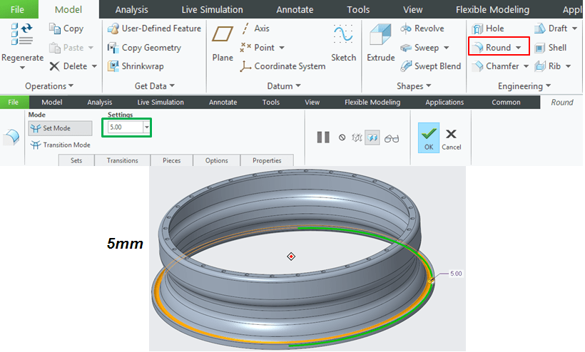 Apply a round of 5mm as shown:
