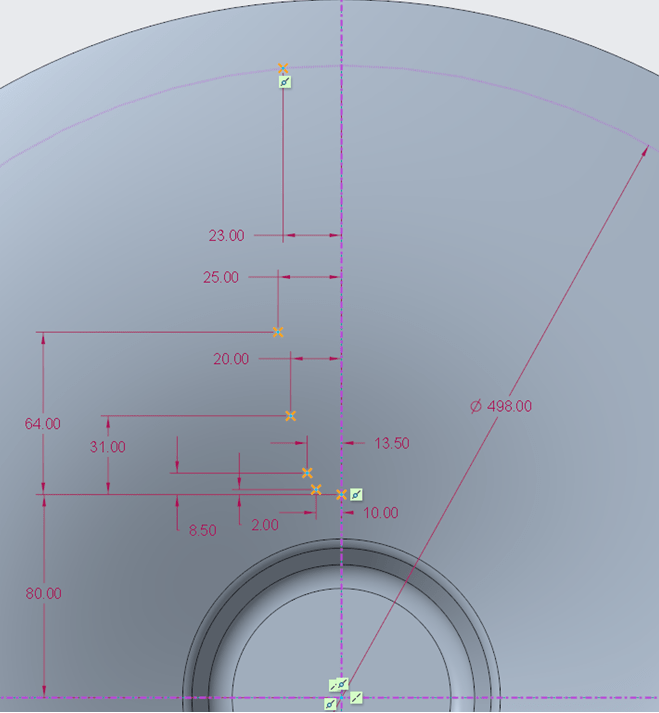 Click on Extrude icon and select the surface on the rim’s backside. Draw a cirlce of Ø8mm and extrude it at 8mm depth: