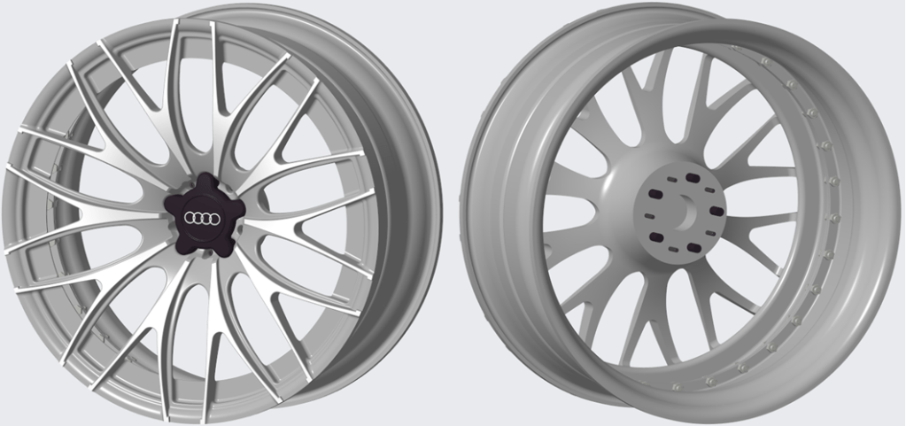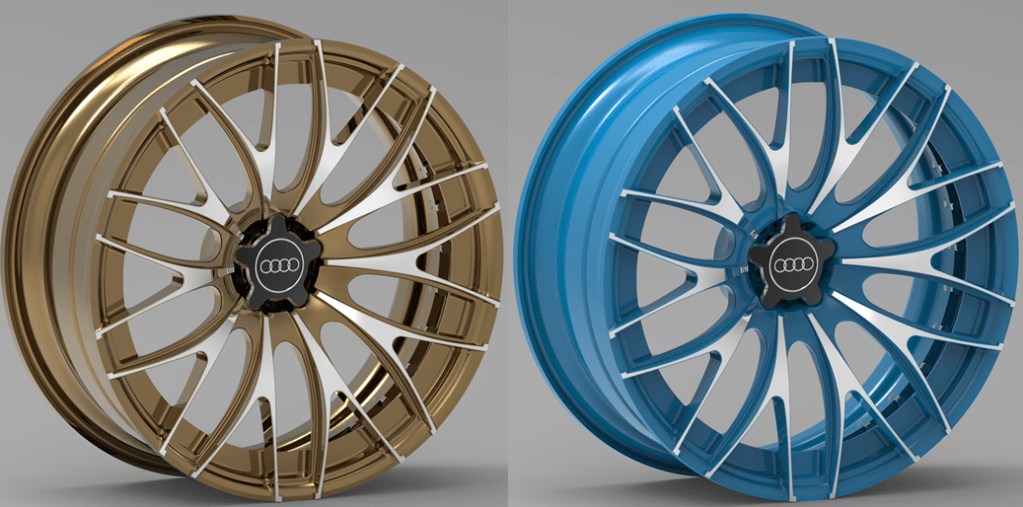 Using Keyshot rendering software you can apply some nice appearance and the final wheel rim can look like this: