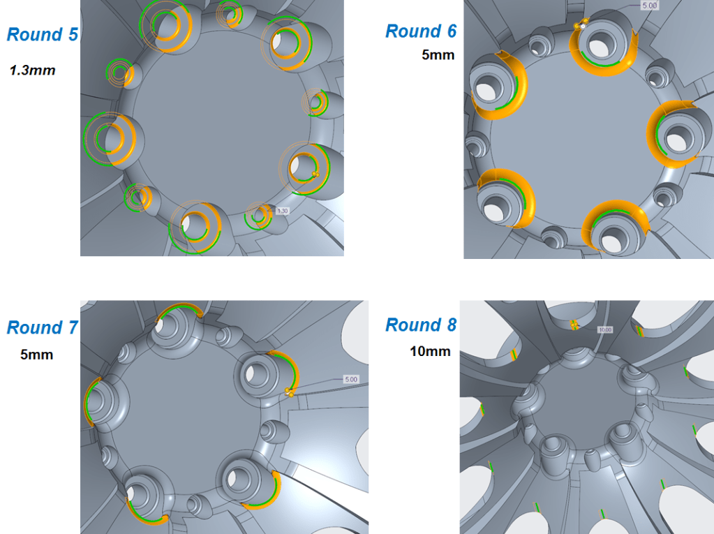 Add 2 rounds of 8mm and 10mm as shown: