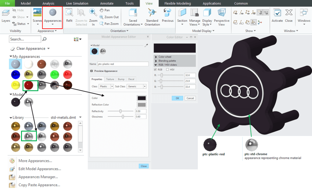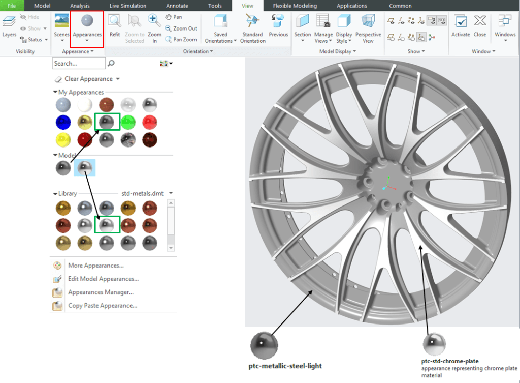 With Keyshot rendering you can apply better appearances for instance as shown below: