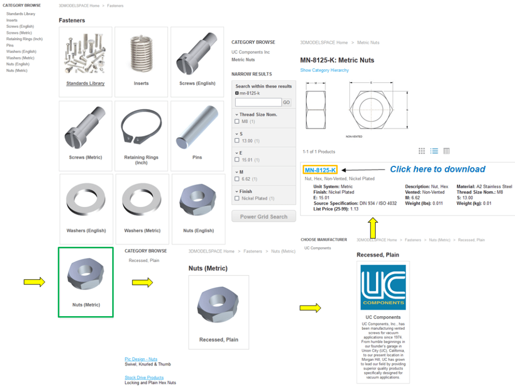On the 3DMODEL SPACE website click on Fastenres–>Screws (metric)–>Cap Screws –>In the Search results type: mc-650-nk select and download the part MC-650-NK