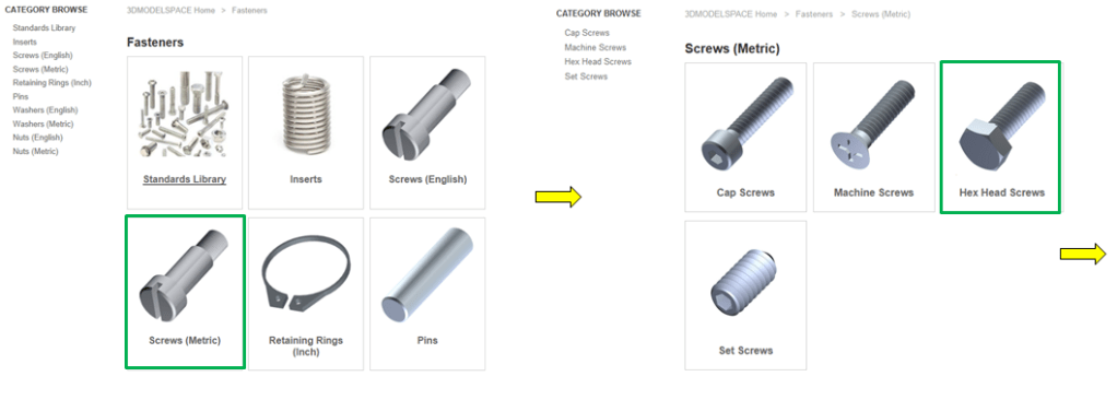 On the 3DMODEL SPACE website click on Fastenres–>Screws (metric)–>Hex Head Screws –>In the Search results type: mc-820-nk select and download the part MH-820-NK