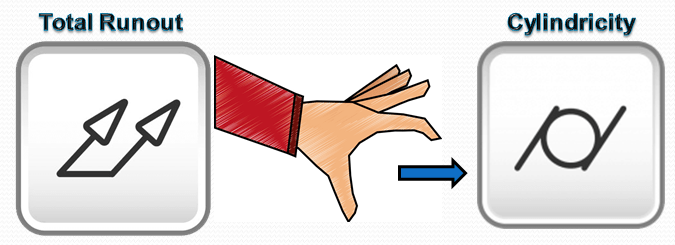 Combination of Tolerances: Total Runout combines concentricity which is axis to axis relation of a part, with cylindricity. Since Cylindricity is actually a combination of Circularity and Straightness, all of these individual geometric symbols are controlled when total runout is used.