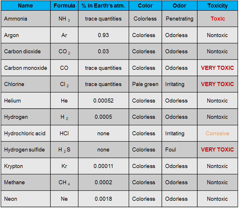 Some of the most frequently used gases are shown in table 1.