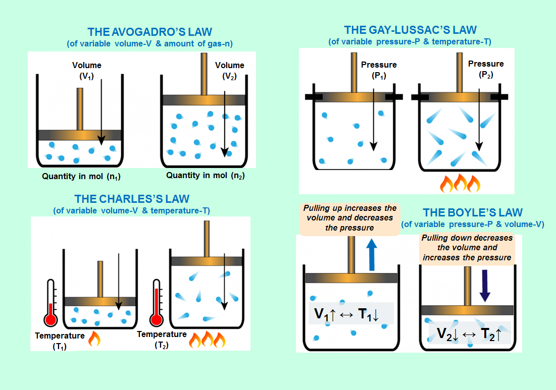 Each of these 4 characteristics are established by a law, and therefore we have the 4 laws of ideal gas. Next I’m going to present how these laws operate.