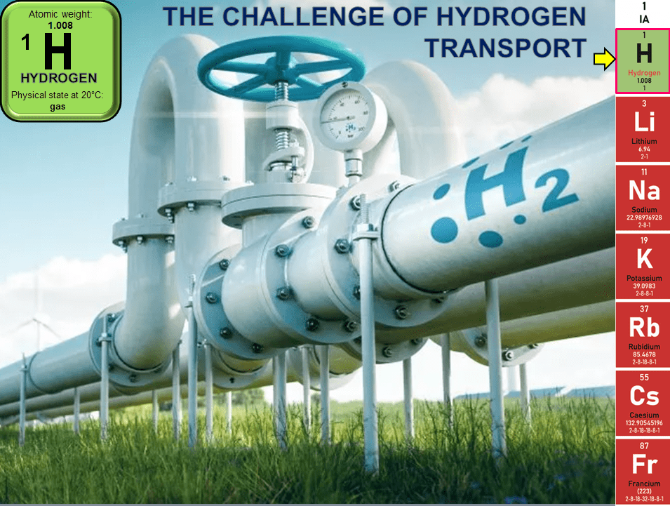 In spite of important optimisations for Hydrogen Storage in the last couple of years, containing Hydrogen remains a challenge. In order to be contained effectively and used as fuel, hydrogen needs to to be kept either as gas at atmospheric temperature under high pressure or as liquid at lower pressure but at cryogenic temperatures, or injected in a certain amount with natural gas other compounds (such as ammonia), otherwise at standard conditions it occupies a large container. Yet besides storage, hydrogen is difficult to transport too. While manufacturers of fuel cells and gas turbines are well on the way to solving the problems involved in turning hydrogen into energy, there are also numerous problems involved in delivering the hydrogen to these devices. Therefore the issue is: how to carry hydrogen to the refuelling stations to supply travelling cars or use it in general as fuel for various applications?