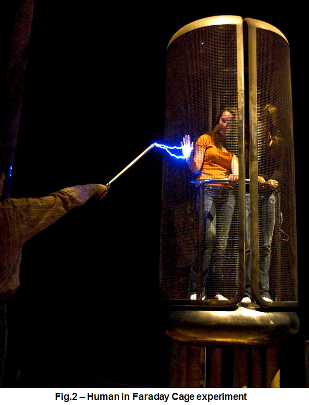 Just for a general definition a Faraday Cage is an enclosure made of a conducting material, such as a metal mesh, that blocks external electromagnetic fields by distributing them over the cage’s exterior. Named after British scientist Michael Faraday who first demonstrated the concept in 1836, such cage shields its interior from static and non-static electric fields, protecting electronic devices from events like lightning strikes or ElectroMagnetic Pulses (EMPs). Planes and cars are both fitting examples of Faraday cages which keep you safe when lightning strikes.