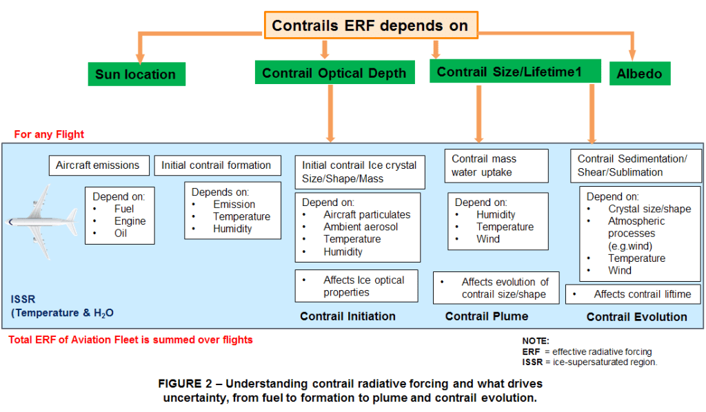 However Not all flights cause warming contrails; and while the aviation sector generates millions of flights each year, only a small fraction of those produce contrails that significantly affect climate. In fact, most flights have little or no contrail impact. The majority of the warming effect from contrails comes from a small percentage of flights that pass through parts of the upper atmosphere called ice supersaturated regions (ISSRs) are cold and have high humidity (water vapor). Researchers are studying ways to predict when and where these regions form, so pilots might one day be able to avoid them. Even small altitude changes may help prevent the most climate-impactful contrails.